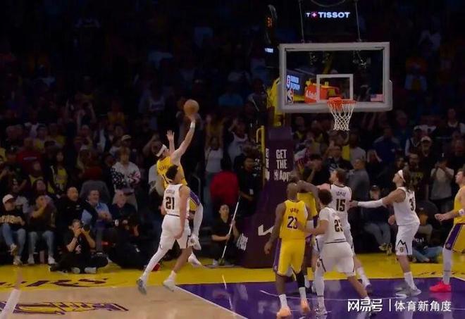 嘿,這還沒(méi)完呢!到了加時(shí)賽,斯潘塞·瓊斯又“閃亮登場(chǎng)”,繼續(xù)給湖人“神助攻”。加時(shí)賽里,頓寶那叫一個(gè)猛,獨(dú)得4分,還狠狠給約老師來(lái)了個(gè)大帽,那場(chǎng)面,簡(jiǎn)直霸氣側(cè)漏!接著戈登和剛哥像兩個(gè)神射手,互飆三分,約老師也不甘示弱,突破打板命中,比分又追到了125平。這時(shí)候,東子站了出來(lái),持球往底線狂奔,眼看著掘金要形成包夾了,他一個(gè)撤步,中距離后仰出手,球像長(zhǎng)了唰”地進(jìn)了,只給掘金留下0.5秒。最后小哈達(dá)威超遠(yuǎn)三分出手,可惜被干擾了,湖人就這么在常規(guī)時(shí)間“死里逃生”后,以127 - 125絕殺!