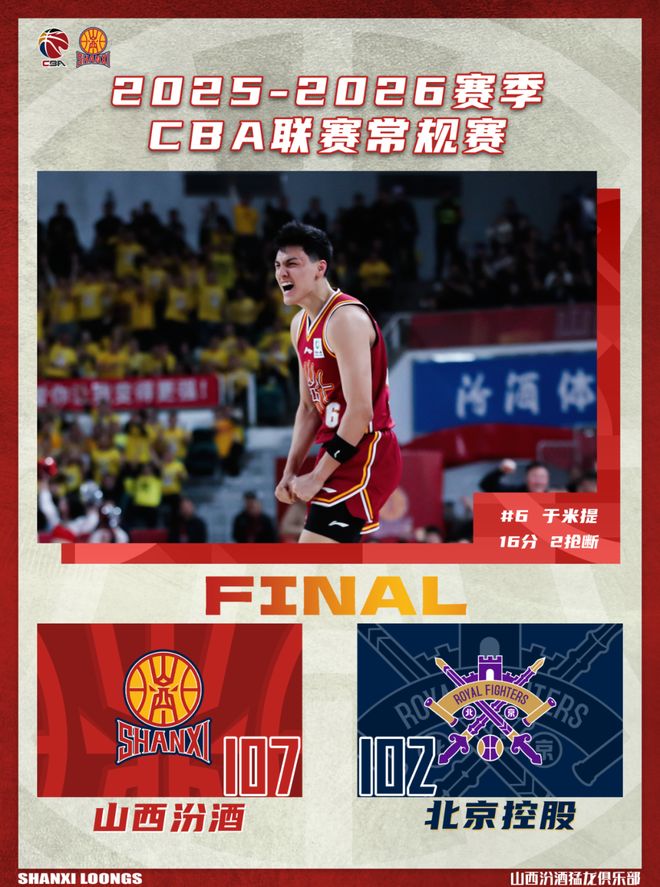 - 戰(zhàn)報 | 有驚無險 山西汾酒107 : 102戰(zhàn)勝北京控股