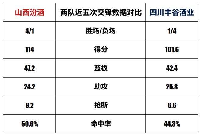 山西汾酒與四川豐谷酒業(yè)歷史上一共交手32次,山西汾酒19勝13負(fù)。本賽季兩隊(duì)交手1次,山西汾酒1勝0負(fù)。