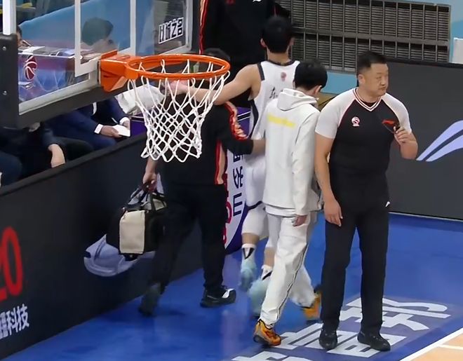 在賽后,徐杰也是一個(gè)人不能夠自行走路,在兩名隊(duì)友的幫助下,離開(kāi)……