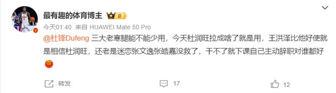 有博主也認為杜鋒的用人很有問題,三個老將實際上應該少用,杜潤旺狀態(tài)不佳還硬用,王洪澤明顯比杜潤旺好使,而且癡迷用張文逸、張皓嘉。