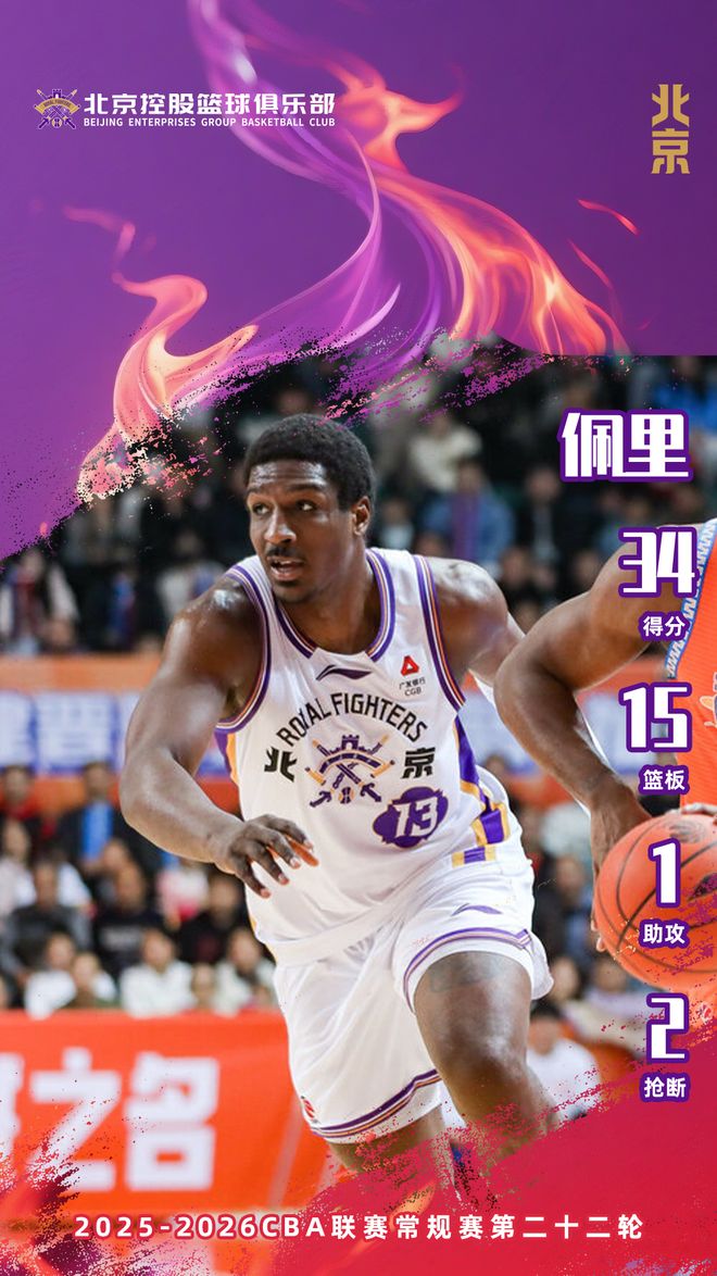 - 2026年02月01日 北控力克福建迎4連勝 佩里34+15 廖三寧19+8 特萊斯21分