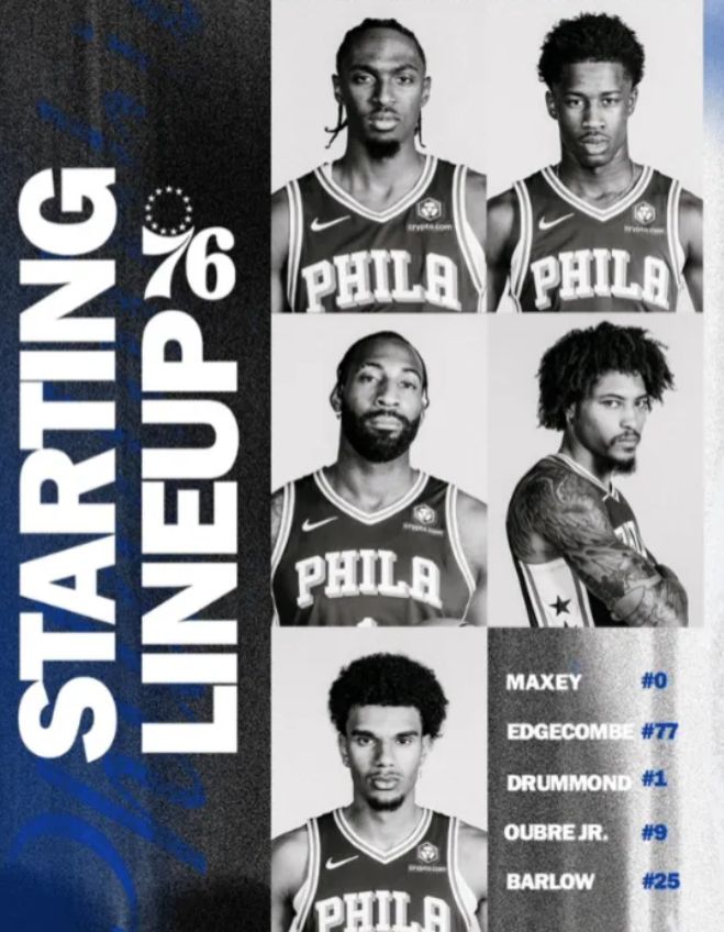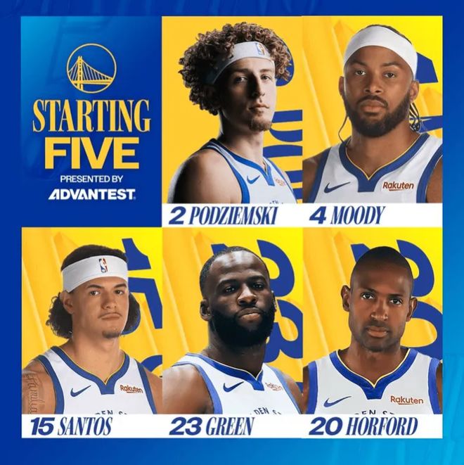 首發(fā)陣容方面,76人隊(duì)這邊,保羅·喬治被禁賽25場,恩比德因背靠背管理缺席,教練排出的首發(fā)五人組為:泰雷斯-馬克西、VJ-埃奇庫姆、凱利-烏布雷、多米尼克-巴洛和安德烈-德拉蒙德;勇士隊(duì)這邊,巴特勒賽季報(bào)銷、庫明加缺陣,再加上庫里的傷病總計(jì)6人缺戰(zhàn),科爾繼續(xù)變陣,啟用本賽季的第22套首發(fā)陣容,則為:吉-桑托斯、摩西-穆迪、布蘭丁-波杰姆斯基 、德雷蒙德-格林、霍福德。
