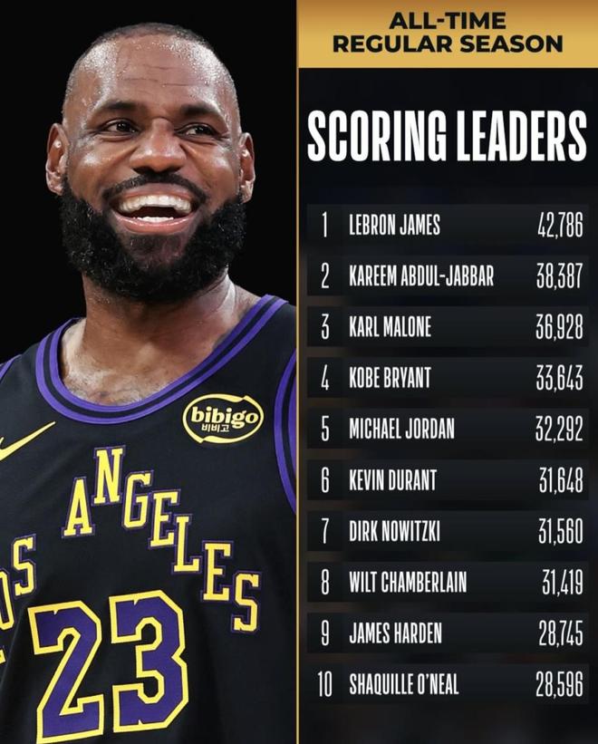 再往上看,科比33,643分、卡爾·馬龍36,928分都在更遠(yuǎn)的位置上,差距已經(jīng)不是“短時間幾場球”能追完的級別。