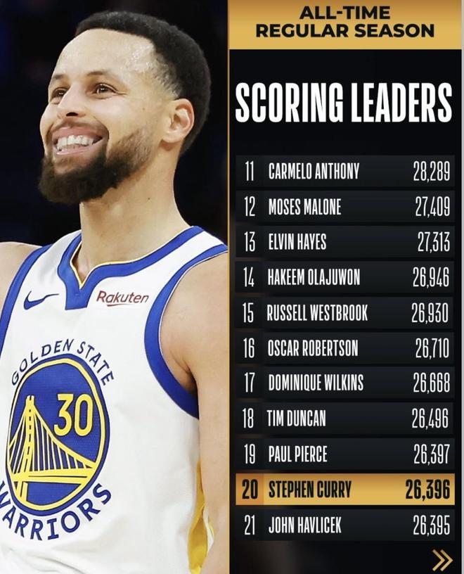 這場打完,庫里常規(guī)賽生涯總得分來到26,397分,追平皮爾斯,并列NBA歷史常規(guī)賽得分榜第19位;哈夫利切克的26,395分被壓到身后。