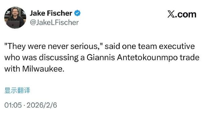 根據(jù)名記Shams報道,雄鹿已經(jīng)正式告知各支球隊,他們將在交易截止日前留下字母哥。至于另一位名記Jake Fischer補充報道表示,一位與雄鹿討論過字母哥交易的球隊高管透露,雄鹿從未與其他球隊認真討論過關于字母哥的交易。