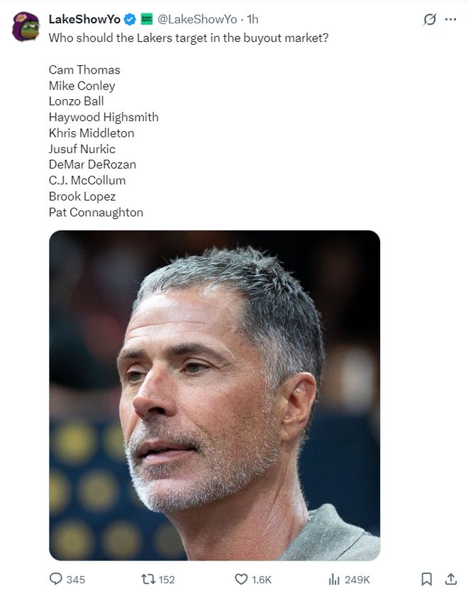 湖人媒體LakerShowYo曬出了潛在的買斷市場名單,他認(rèn)為這些球員是湖人可以嘗試追求的對象:托馬斯、康利、朗佐鮑爾、海史密斯、米德爾頓、努爾基奇、德羅贊、麥科勒姆、大洛、康諾頓。