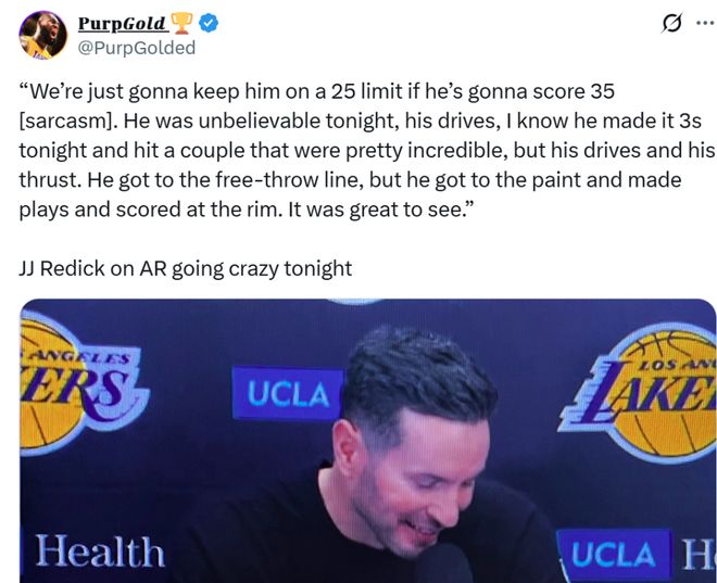 賽后湖人主帥雷迪克被問(wèn)到相關(guān)問(wèn)題,他表示東契奇左腿筋有些酸痛,他與球隊(duì)醫(yī)療團(tuán)隊(duì)一致認(rèn)為東契奇無(wú)法重返賽場(chǎng)。