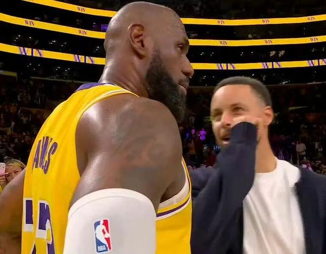 賽后,老頭和庫里擁抱致意,竊竊私語