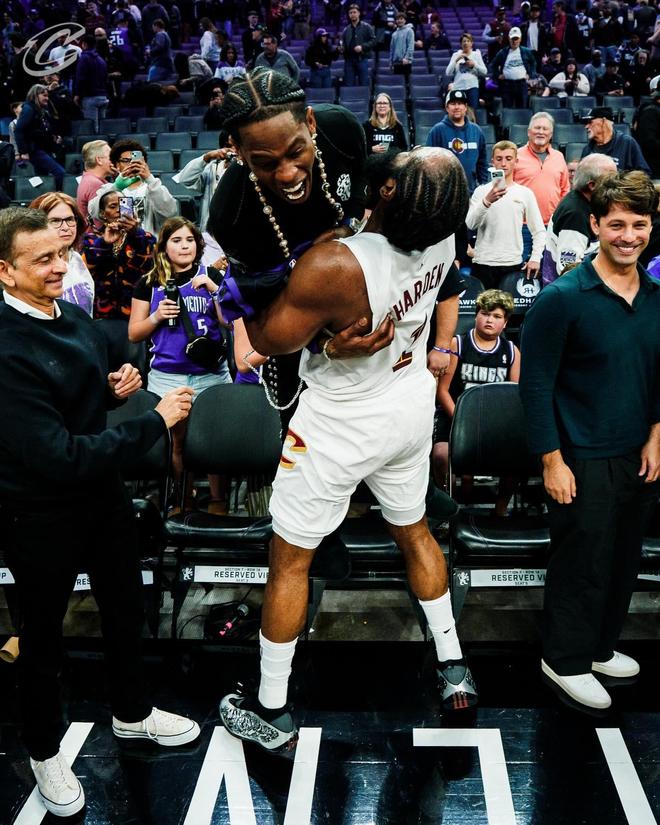 Travis Scott現(xiàn)場(chǎng)觀戰(zhàn)哈登騎士首秀,兩人賽后激情相擁