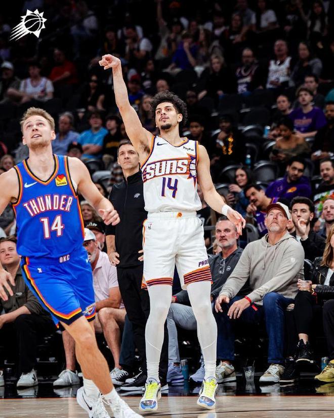 雷霆上一場(chǎng)客場(chǎng)119-110戰(zhàn)勝湖人,太陽(yáng)上一場(chǎng)主場(chǎng)120-111戰(zhàn)勝獨(dú)行俠,賽季前三次交鋒雷霆2勝1負(fù)處于上風(fēng)。本場(chǎng)雷霆缺少亞歷山大與米切爾,太陽(yáng)缺少阿倫、布克、格林。面對(duì)缺少雙核的殘陣太陽(yáng)對(duì)決,雷霆也缺少亞歷山大,但依然是占據(jù)絕對(duì)實(shí)力優(yōu)勢(shì)。首節(jié)前5分鐘雷霆僅16-14領(lǐng)先,但雷霆逐步擴(kuò)大23-18領(lǐng)先,太陽(yáng)追到差3分。雷霆一波14-5攻勢(shì)碾壓太陽(yáng)擴(kuò)大兩位數(shù)領(lǐng)先優(yōu)勢(shì),首節(jié)比賽結(jié)束雷霆37-25領(lǐng)先太陽(yáng)12分。