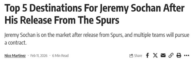 而索漢對(duì)于下家的要求也十分簡(jiǎn)單,ESPN的Michael C. Wright曝出索漢想要加盟一支立即能獲得穩(wěn)定出場(chǎng)時(shí)間的球隊(duì)。