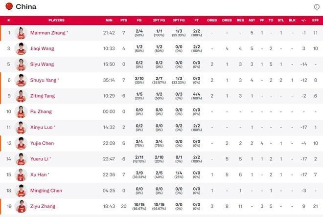 統(tǒng)計(jì)數(shù)據(jù)顯示:張子宇在場(chǎng)期間,中國(guó)隊(duì)凈勝9分;而她下場(chǎng)的21分鐘里,球隊(duì)凈負(fù)24分。這一懸殊對(duì)比,直觀印證了她在攻防體系中的不可替代性。