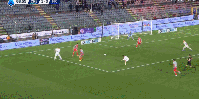 第57分鐘,扳回一城,奧克雷克門前推射破門,克雷莫內(nèi)塞1-3佛羅倫薩