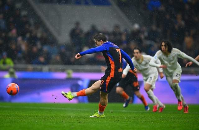 第45分鐘,勞塔羅轉(zhuǎn)身擺脫分球左路,巴斯托尼插上傳中,落點恰到好處,皮奧-埃斯波西托搶點頭槌建功。國米6分鐘內(nèi)連轟3球,3-2反超對手。