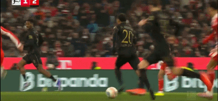 第29分鐘,拜仁前場(chǎng)4打3,迪亞斯把球停大了,隨后被達(dá)門(mén)化解