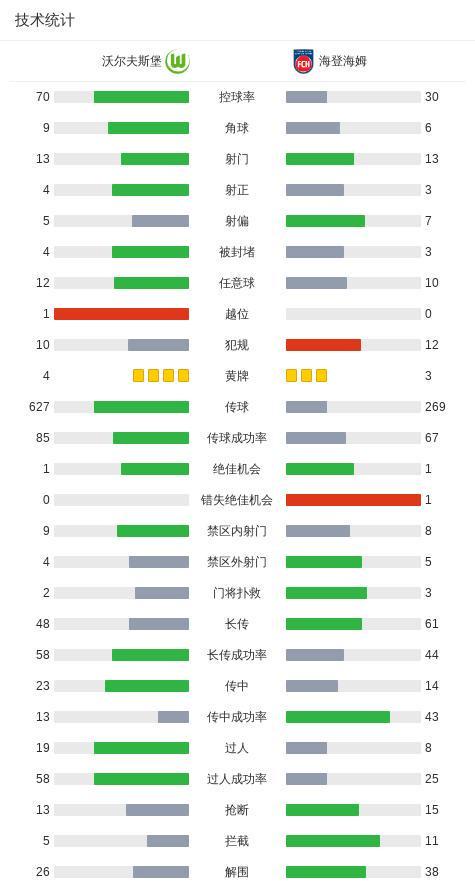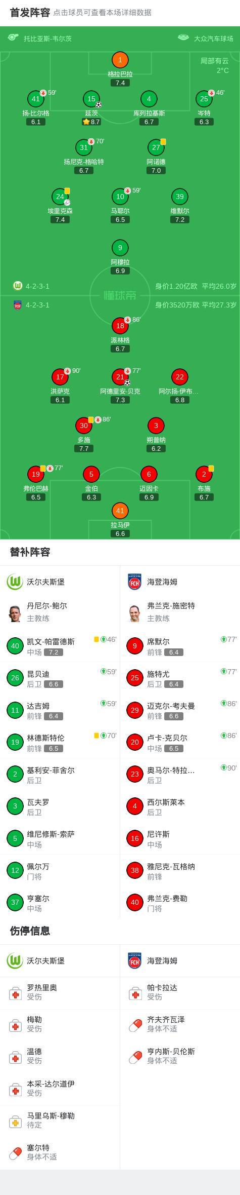 - 沃爾夫斯堡1-1海登海姆,阿德里安-貝克首開記錄,延茨救主