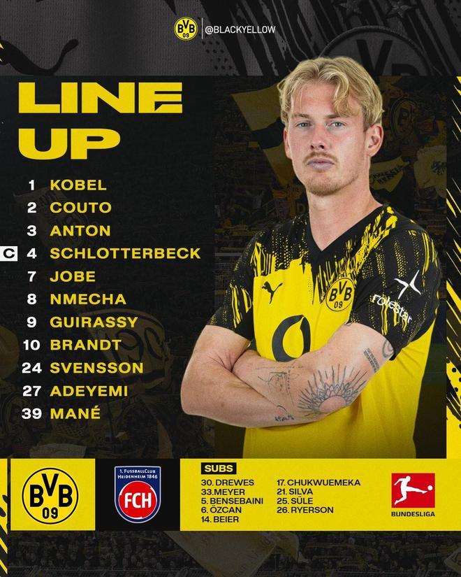 多特vs海登海姆:吉拉西、布蘭特、阿德耶米首發(fā)