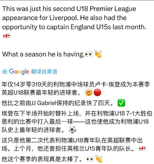 之前說到過,對比像曼城和切爾西甚至埃弗頓的尖子青訓(xùn)球員,利物浦在過去很多年一直沒有身體很好的類型(這里指一路梯隊上來的,然而實(shí)際上買到的小盆友們橫向?qū)Ρ纫膊凰闵眢w特別好)這次小埃登算是在身體和技巧端直接跳了好幾級。