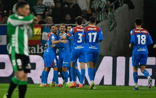 馬競(jìng)在第12分鐘就利用角球機(jī)會(huì)取得進(jìn)球。漢茨科幫助馬競(jìng)首開(kāi)紀(jì)錄。第30分鐘,魯杰里助攻小西蒙尼低射破門(mén),擴(kuò)大比分。只過(guò)了8分鐘,馬競(jìng)再次進(jìn)球。這一次是巴里奧斯的助攻,新援盧克曼也收獲了進(jìn)球。下半場(chǎng)馬競(jìng)并沒(méi)有收手,攻勢(shì)依然很猛。格列茲曼和阿爾馬達(dá)相繼進(jìn)球。最終的比分定格為5-0,馬競(jìng)狂勝皇家貝蒂斯。