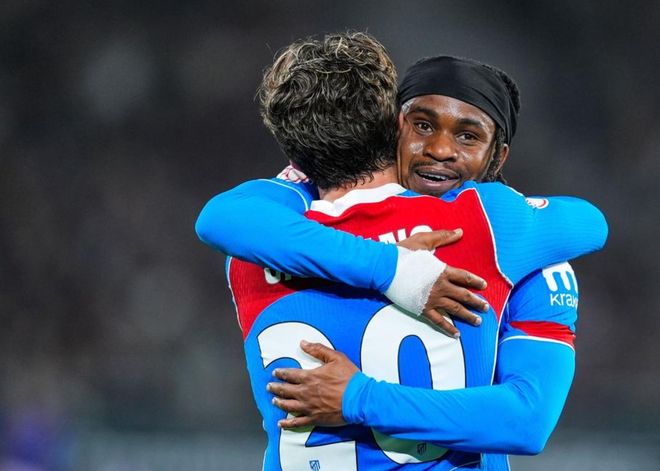本場(chǎng)比賽馬競(jìng)排出了442陣型。格列茲曼和盧克曼搭檔雙前鋒。巴埃納、科克、巴里奧斯和小西蒙尼4中場(chǎng)聯(lián)袂出擊。魯杰里、漢茨科、馬克-普維爾和馬科斯-略倫特4后衛(wèi)首發(fā)出戰(zhàn)。穆索擔(dān)任首發(fā)門(mén)將。阿爾瓦雷斯、尼古拉斯-岡薩雷斯和阿爾馬達(dá)坐在替補(bǔ)席待命。