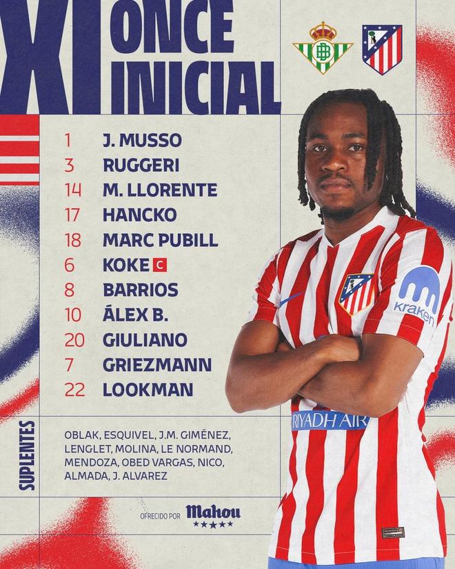 - 馬競客戰(zhàn)貝蒂斯:格列茲曼、小西蒙尼首發(fā)出戰(zhàn),盧克曼首秀