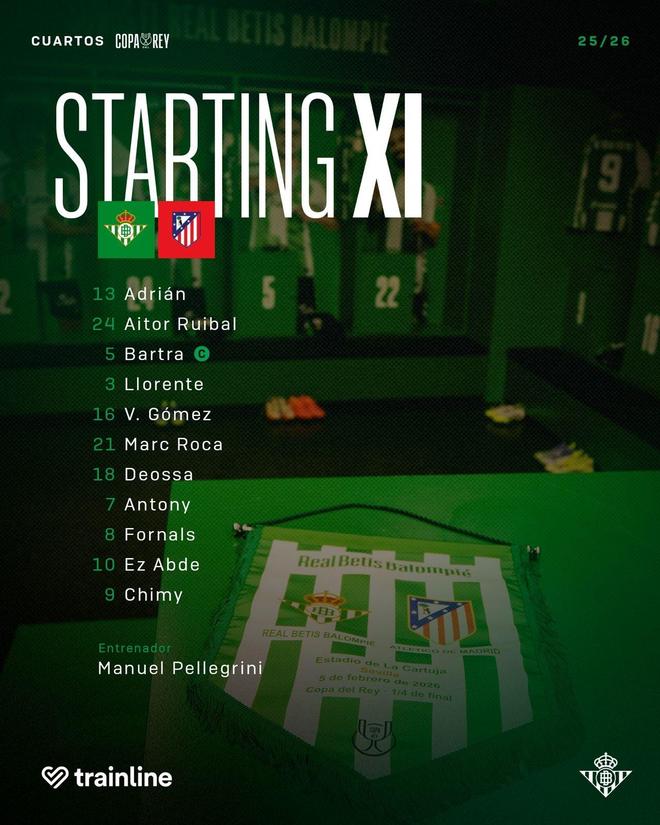 北京時(shí)間2月6號(hào)凌晨4點(diǎn),西班牙國王杯1/4決賽展開一場(chǎng)焦點(diǎn)戰(zhàn)役,馬競(jìng)對(duì)陣貝蒂斯。賽前,雙方公布首發(fā)陣容。