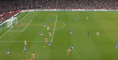 第42分鐘,特羅薩德左路突破倒三角回敲,蘇維門迪禁區(qū)外勁射,皮球擊中立柱入網(wǎng),羅埃夫斯鞭長(zhǎng)莫及,阿森納打破僵局,1-0!