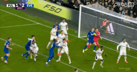 第82分鐘,埃弗頓角球機(jī)會,萊諾自擺烏龍,富勒姆1-2埃弗頓