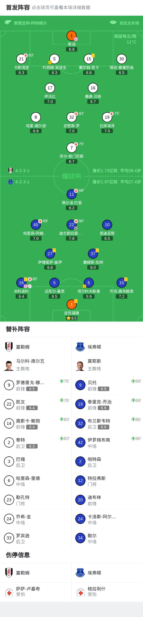 - 埃弗頓2-1逆轉(zhuǎn)富勒姆,霍爾建功,米科連科、萊諾烏龍