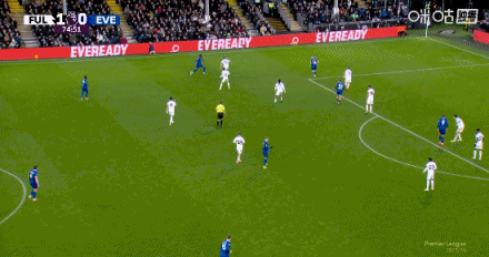 第75分鐘,霍爾中路搶點(diǎn),低射扳平比分,富勒姆1-1埃弗頓