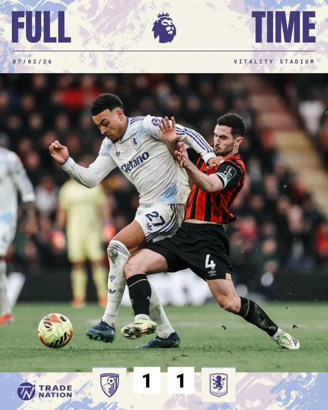 在本輪的英超聯(lián)賽中,維拉客場1-1戰(zhàn)平伯恩茅斯,連續(xù)兩場比賽無緣獲勝。