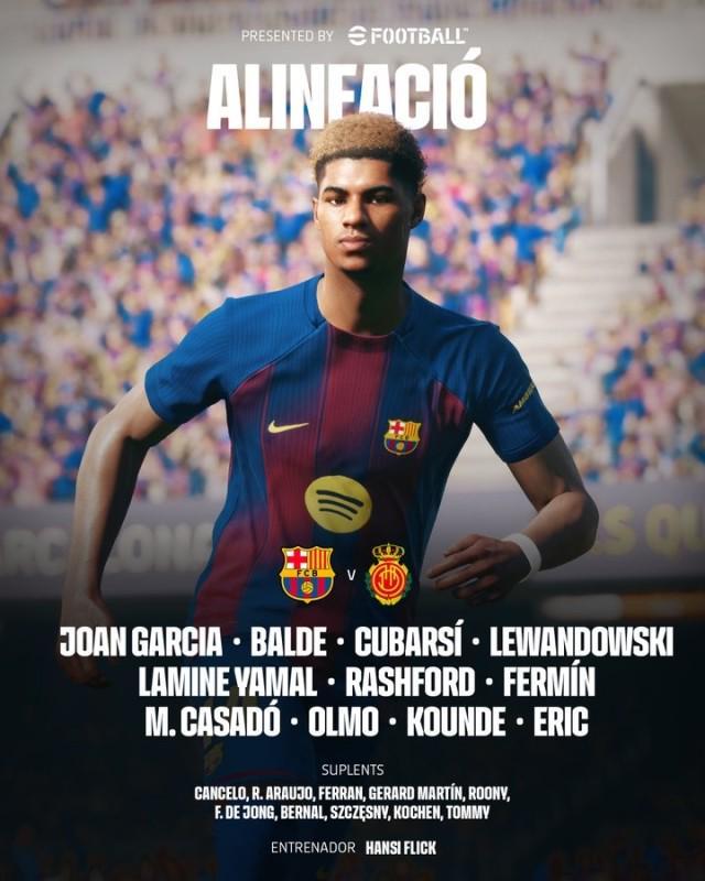 西甲第23輪,巴薩主場(chǎng)迎戰(zhàn)馬洛卡,賽前巴薩首發(fā)陣容出爐,具體名單如下: 巴薩首發(fā):霍安·加西亞 / 孔德、庫(kù)巴西、埃里克·加西亞、巴爾德 / 卡薩多、奧爾莫 / 亞馬爾、費(fèi)爾明·洛佩斯、拉什福德 / 萊萬(wàn)多夫斯基