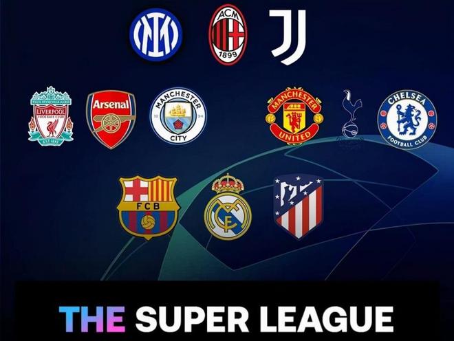 2021年4月19日,曼聯(lián)、利物浦、曼城、阿森納、切爾西、熱刺、巴塞羅那、皇家馬德里、馬德里競(jìng)技、國(guó)際米蘭、AC米蘭和尤文圖斯等12家歐洲足球俱樂(lè)部,共同宣布成立歐洲超級(jí)聯(lián)賽。