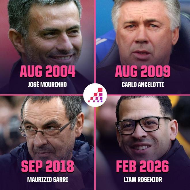 執(zhí)教切爾西前四場英超全勝,羅塞尼爾成隊史正式主帥第四人