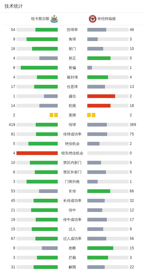 第23分鐘,紐卡率先打破僵局,博特曼頭槌破門,紐卡1-0布倫特福德
