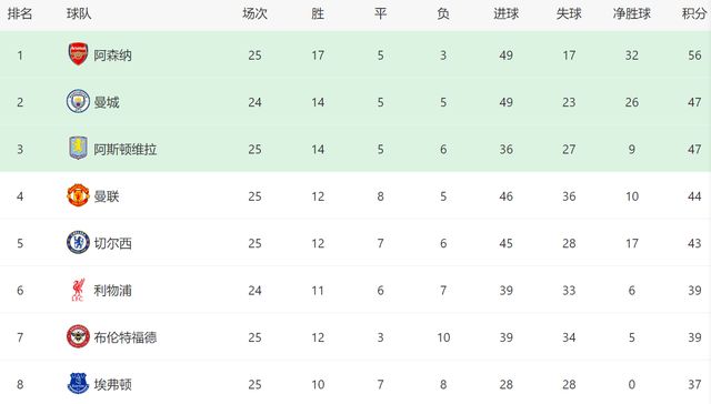 - 隨著槍手3-0,紅魔4連勝,英超最新排名更新!切爾西排第5
