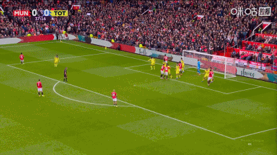 比賽第37分鐘,曼聯(lián)角球配合,姆伯莫推桿破門,曼聯(lián)1-0領(lǐng)先熱刺。