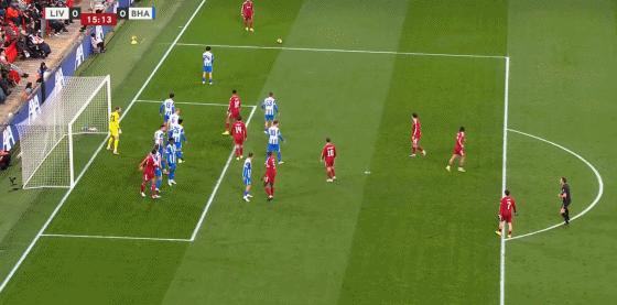 第16分鐘,薩拉赫主罰小角度任意球直接攻門,皮球偏出立柱