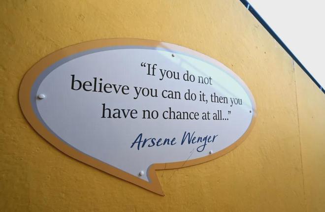 曼斯菲爾德的主場內(nèi)貼著一句溫格的名言:“如果你都不相信自己能做到,那么你就完全不可能做到……”