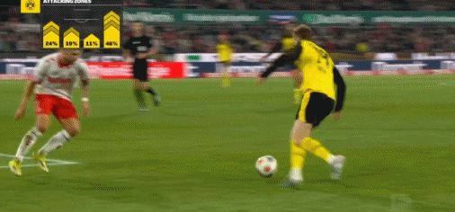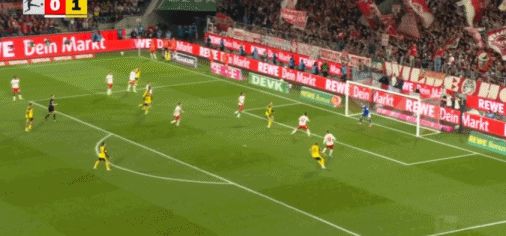 第17分鐘,拜爾頭球送助攻,吉拉西鏟射破門,多特1-0科隆