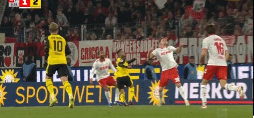 第69分鐘,裁判判給多特點球,回看后取消判罰