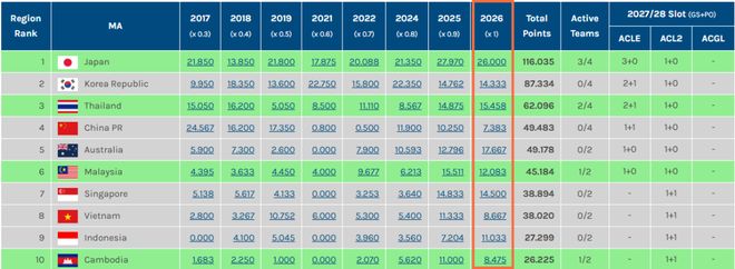 - 中超本賽季亞冠技術(shù)積分滑落至東亞區(qū)第10位,被柬埔寨超越